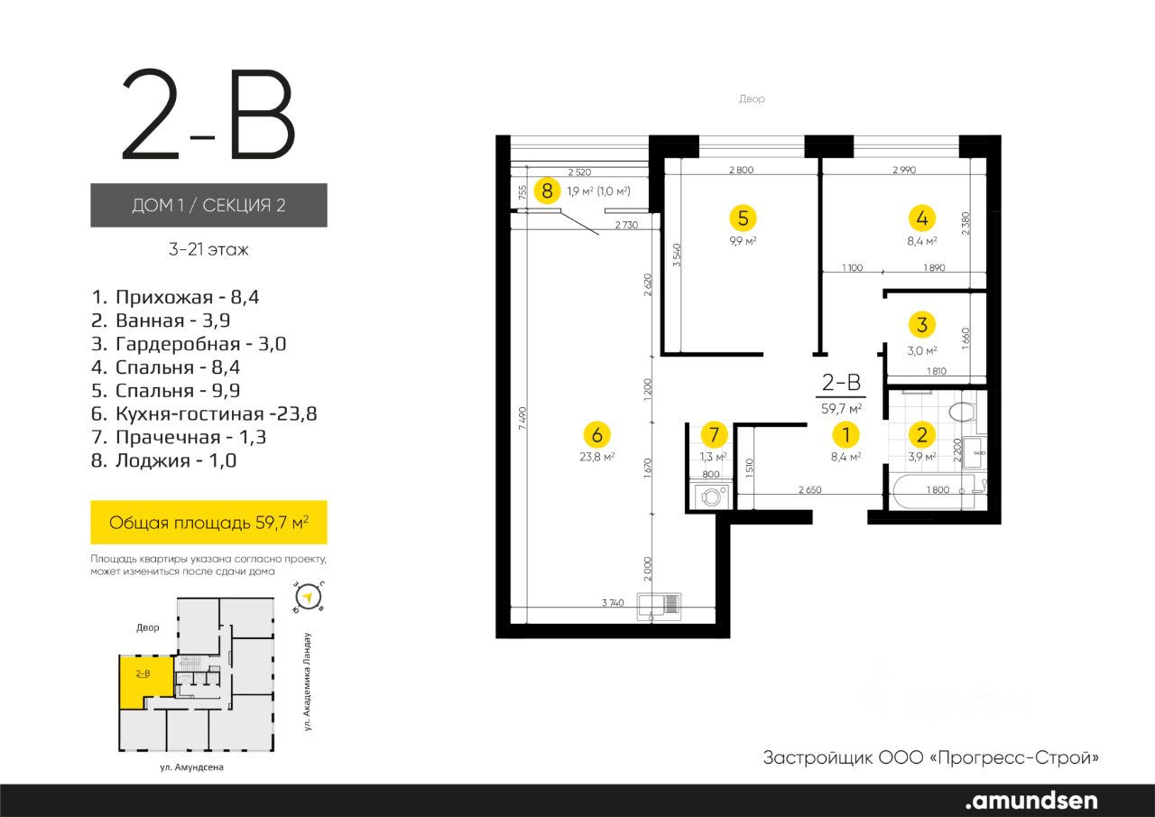 Жилой квартал "Amundsen" - для себя, для семьи, для жизни и развития. Авторская концепция проекта эффектно выделяется в 3 особенностях комплекса: фасады, двор и места общего пользования. AMUNDSEN ПРОЕКТ С ХАРАКТЕРОМ ВЕЛИКОГО ПЕРВООТКРЫВАТЕЛЯ. 4 СЕЗОНА: Двор-трансформер позволяет активно использовать все площадки круглый год. В холодное время года санки, коньки и снежные бои за главную башню. В теплое время источник наполняет двор водой и прохладой. Работают площадки для активных игр и спокойного отдыха. 6 ДЕТСКИХ ПЛОЩАДОК: Мы разделили площадки по возрастным группам для малышей и детей постарше. Качели, аттракционы, водные и активные игры созданы, чтобы познавать мир. 5 ПЛОЩАДОК ДЛЯ СПОКОЙНОГО ОТДЫХА: За счет игры с ландшафтом мы создали приватные зоны, украсили пространство разнотравьем, оживили двор источником. Шум воды, лежаки, беседки, парк места, где ты почувствуешь течение жизни. AMUNDSEN ИДЕАЛЬНОЕ МЕСТО ДЛЯ ЖИЗНИ И РАЗВИТИЯ. - Жилой квартал расположен в экологически чистом районе в окружении двух лесных массивов. - Новые современные школы и детские сады. Спортивный кластер для занятий. - Главный холл пространство для всех. Для самых маленьких игры, для взрослых кафе с ярким дизайном, тихий коворкинг, места для отдыха и светлый, просторный атриум. - Детские площадки "будущего" с оригинальным подходом к созданию игровой среды. - Безопасная территория. Круглосуточная охрана, видеонаблюдение 24/7, электронная система доступа, двор без машин. Застройщик ООО СЗ "Прогресс-Строй", проектная декларация на сайте наш.дом.рф