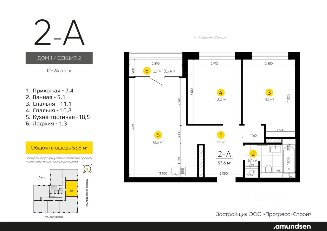 Жилой квартал "Amundsen" - для себя, для семьи, для жизни и развития. Авторская концепция проекта эффектно выделяется в 3 особенностях комплекса: фасады, двор и места общего пользования. AMUNDSEN ПРОЕКТ С ХАРАКТЕРОМ ВЕЛИКОГО ПЕРВООТКРЫВАТЕЛЯ. 4 СЕЗОНА: Двор-трансформер позволяет активно использовать все площадки круглый год. В холодное время года санки, коньки и снежные бои за главную башню. В теплое время источник наполняет двор водой и прохладой. Работают площадки для активных игр и спокойного отдыха. 6 ДЕТСКИХ ПЛОЩАДОК: Мы разделили площадки по возрастным группам для малышей и детей постарше. Качели, аттракционы, водные и активные игры созданы, чтобы познавать мир. 5 ПЛОЩАДОК ДЛЯ СПОКОЙНОГО ОТДЫХА: За счет игры с ландшафтом мы создали приватные зоны, украсили пространство разнотравьем, оживили двор источником. Шум воды, лежаки, беседки, парк места, где ты почувствуешь течение жизни. AMUNDSEN ИДЕАЛЬНОЕ МЕСТО ДЛЯ ЖИЗНИ И РАЗВИТИЯ. - Жилой квартал расположен в экологически чистом районе в окружении двух лесных массивов. - Новые современные школы и детские сады. Спортивный кластер для занятий. - Главный холл пространство для всех. Для самых маленьких игры, для взрослых кафе с ярким дизайном, тихий коворкинг, места для отдыха и светлый, просторный атриум. - Детские площадки "будущего" с оригинальным подходом к созданию игровой среды. - Безопасная территория. Круглосуточная охрана, видеонаблюдение 24/7, электронная система доступа, двор без машин. Застройщик ООО СЗ "Прогресс-Строй", проектная декларация на сайте наш.дом.рф