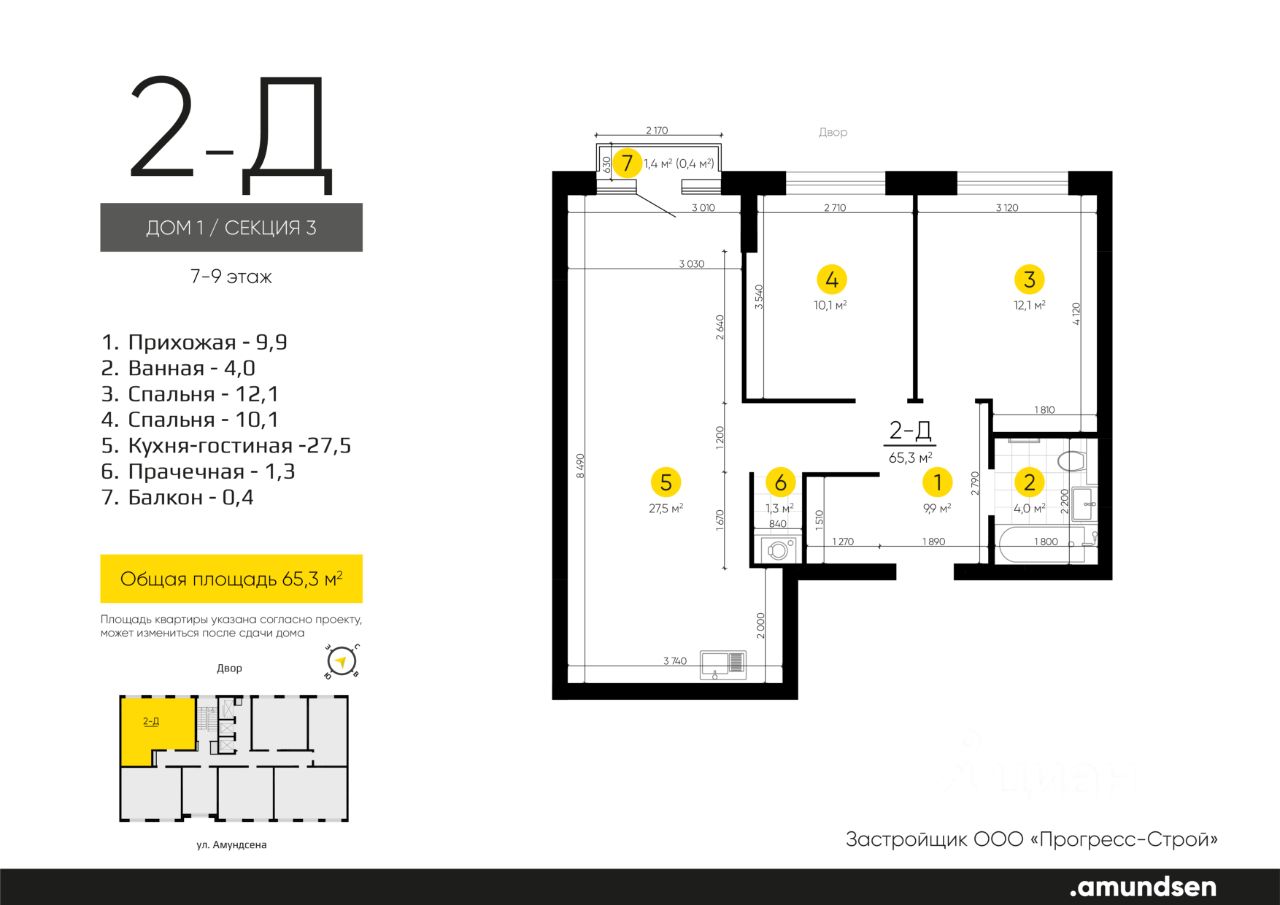 Жилой квартал "Amundsen" - для себя, для семьи, для жизни и развития. Авторская концепция проекта эффектно выделяется в 3 особенностях комплекса: фасады, двор и места общего пользования. AMUNDSEN ПРОЕКТ С ХАРАКТЕРОМ ВЕЛИКОГО ПЕРВООТКРЫВАТЕЛЯ. 4 СЕЗОНА: Двор-трансформер позволяет активно использовать все площадки круглый год. В холодное время года санки, коньки и снежные бои за главную башню. В теплое время источник наполняет двор водой и прохладой. Работают площадки для активных игр и спокойного отдыха. 6 ДЕТСКИХ ПЛОЩАДОК: Мы разделили площадки по возрастным группам для малышей и детей постарше. Качели, аттракционы, водные и активные игры созданы, чтобы познавать мир. 5 ПЛОЩАДОК ДЛЯ СПОКОЙНОГО ОТДЫХА: За счет игры с ландшафтом мы создали приватные зоны, украсили пространство разнотравьем, оживили двор источником. Шум воды, лежаки, беседки, парк места, где ты почувствуешь течение жизни. AMUNDSEN ИДЕАЛЬНОЕ МЕСТО ДЛЯ ЖИЗНИ И РАЗВИТИЯ. - Жилой квартал расположен в экологически чистом районе в окружении двух лесных массивов. - Новые современные школы и детские сады. Спортивный кластер для занятий. - Главный холл пространство для всех. Для самых маленьких игры, для взрослых кафе с ярким дизайном, тихий коворкинг, места для отдыха и светлый, просторный атриум. - Детские площадки "будущего" с оригинальным подходом к созданию игровой среды. - Безопасная территория. Круглосуточная охрана, видеонаблюдение 24/7, электронная система доступа, двор без машин. Застройщик ООО СЗ "Прогресс-Строй", проектная декларация на сайте наш.дом.рф