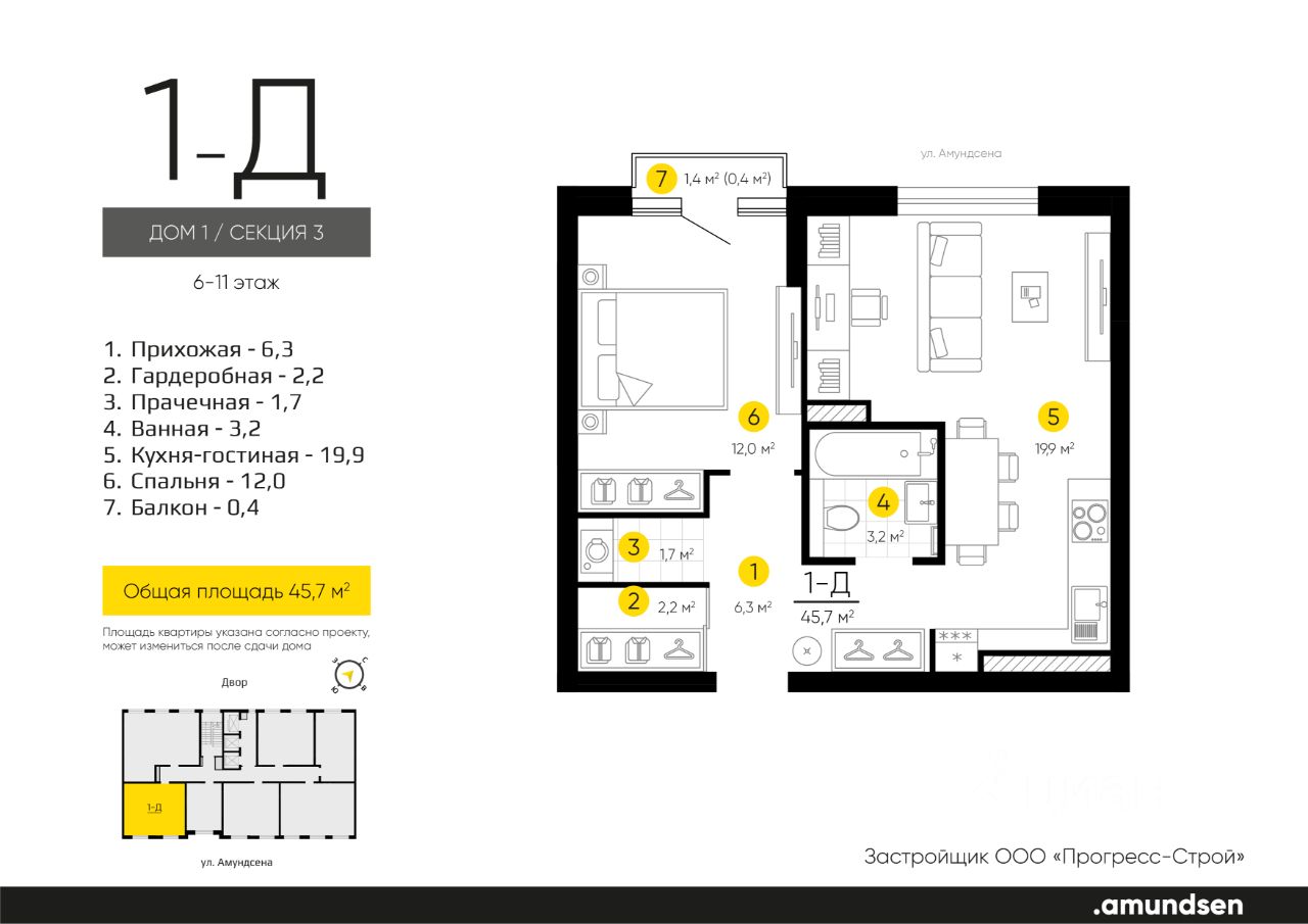Жилой квартал "Amundsen" - для себя, для семьи, для жизни и развития. Авторская концепция проекта эффектно выделяется в 3 особенностях комплекса: фасады, двор и места общего пользования. AMUNDSEN ПРОЕКТ С ХАРАКТЕРОМ ВЕЛИКОГО ПЕРВООТКРЫВАТЕЛЯ. 4 СЕЗОНА: Двор-трансформер позволяет активно использовать все площадки круглый год. В холодное время года санки, коньки и снежные бои за главную башню. В теплое время источник наполняет двор водой и прохладой. Работают площадки для активных игр и спокойного отдыха. 6 ДЕТСКИХ ПЛОЩАДОК: Мы разделили площадки по возрастным группам для малышей и детей постарше. Качели, аттракционы, водные и активные игры созданы, чтобы познавать мир. 5 ПЛОЩАДОК ДЛЯ СПОКОЙНОГО ОТДЫХА: За счет игры с ландшафтом мы создали приватные зоны, украсили пространство разнотравьем, оживили двор источником. Шум воды, лежаки, беседки, парк места, где ты почувствуешь течение жизни. AMUNDSEN ИДЕАЛЬНОЕ МЕСТО ДЛЯ ЖИЗНИ И РАЗВИТИЯ. - Жилой квартал расположен в экологически чистом районе в окружении двух лесных массивов. - Новые современные школы и детские сады. Спортивный кластер для занятий. - Главный холл пространство для всех. Для самых маленьких игры, для взрослых кафе с ярким дизайном, тихий коворкинг, места для отдыха и светлый, просторный атриум. - Детские площадки "будущего" с оригинальным подходом к созданию игровой среды. - Безопасная территория. Круглосуточная охрана, видеонаблюдение 24/7, электронная система доступа, двор без машин. Застройщик ООО СЗ "Прогресс-Строй", проектная декларация на сайте наш.дом.рф