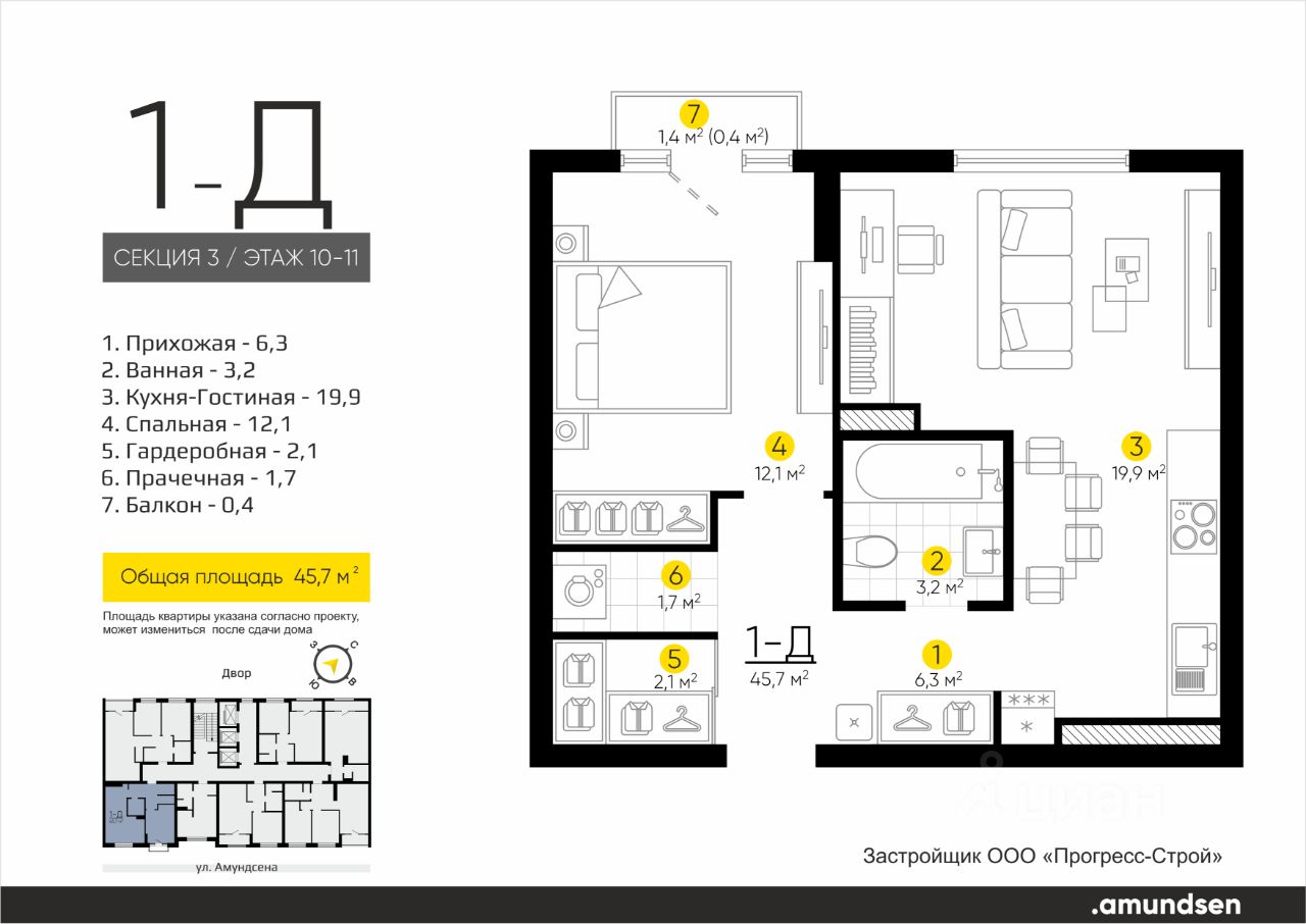 Жилой квартал "Amundsen" - для себя, для семьи, для жизни и развития. Авторская концепция проекта эффектно выделяется в 3 особенностях комплекса: фасады, двор и места общего пользования. AMUNDSEN ПРОЕКТ С ХАРАКТЕРОМ ВЕЛИКОГО ПЕРВООТКРЫВАТЕЛЯ. 4 СЕЗОНА: Двор-трансформер позволяет активно использовать все площадки круглый год. В холодное время года санки, коньки и снежные бои за главную башню. В теплое время источник наполняет двор водой и прохладой. Работают площадки для активных игр и спокойного отдыха. 6 ДЕТСКИХ ПЛОЩАДОК: Мы разделили площадки по возрастным группам для малышей и детей постарше. Качели, аттракционы, водные и активные игры созданы, чтобы познавать мир. 5 ПЛОЩАДОК ДЛЯ СПОКОЙНОГО ОТДЫХА: За счет игры с ландшафтом мы создали приватные зоны, украсили пространство разнотравьем, оживили двор источником. Шум воды, лежаки, беседки, парк места, где ты почувствуешь течение жизни. AMUNDSEN ИДЕАЛЬНОЕ МЕСТО ДЛЯ ЖИЗНИ И РАЗВИТИЯ. - Жилой квартал расположен в экологически чистом районе в окружении двух лесных массивов. - Новые современные школы и детские сады. Спортивный кластер для занятий. - Главный холл пространство для всех. Для самых маленьких игры, для взрослых кафе с ярким дизайном, тихий коворкинг, места для отдыха и светлый, просторный атриум. - Детские площадки "будущего" с оригинальным подходом к созданию игровой среды. - Безопасная территория. Круглосуточная охрана, видеонаблюдение 24/7, электронная система доступа, двор без машин. Застройщик ООО СЗ "Прогресс-Строй", проектная декларация на сайте наш.дом.рф