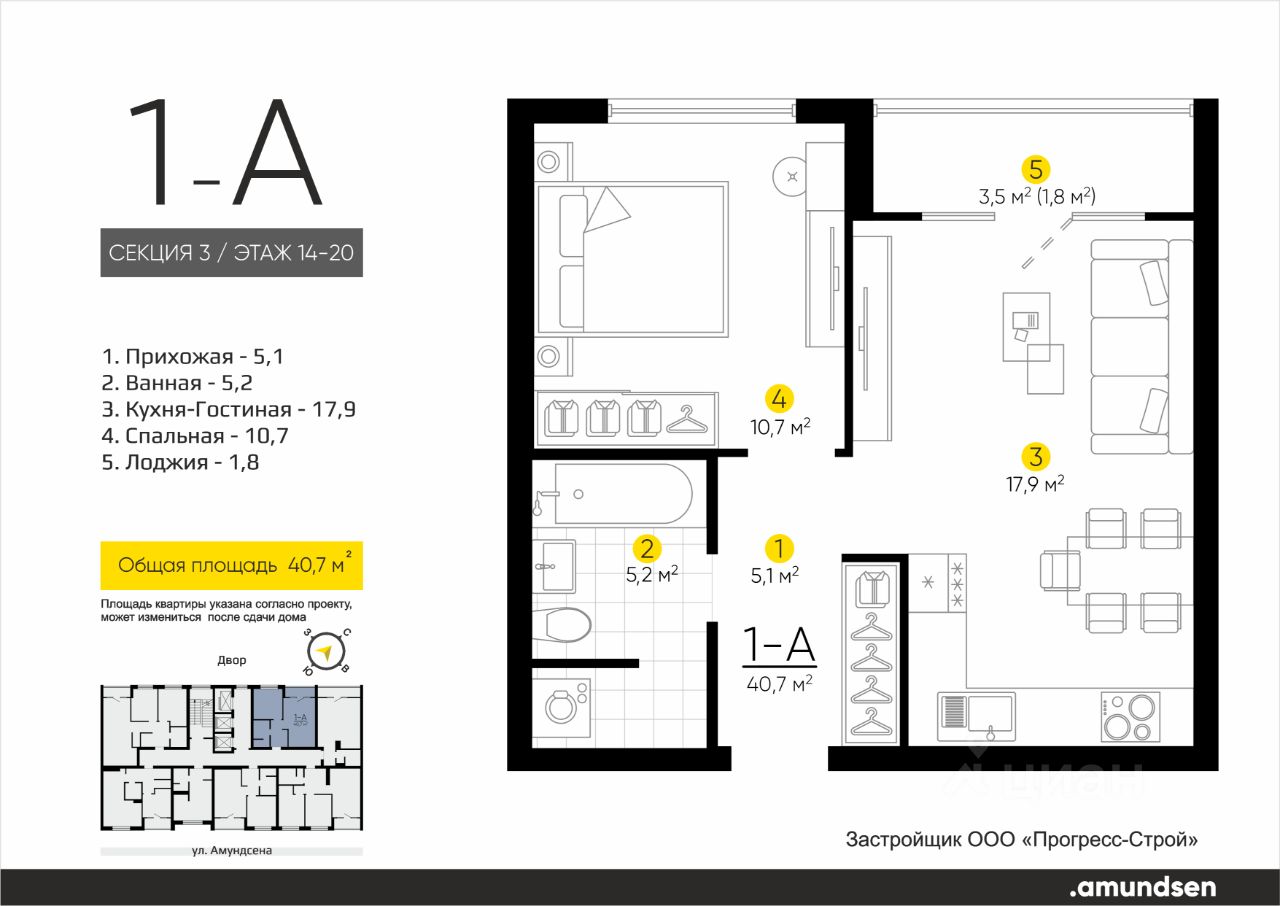 Жилой квартал "Amundsen" - для себя, для семьи, для жизни и развития. Авторская концепция проекта эффектно выделяется в 3 особенностях комплекса: фасады, двор и места общего пользования. AMUNDSEN ПРОЕКТ С ХАРАКТЕРОМ ВЕЛИКОГО ПЕРВООТКРЫВАТЕЛЯ. 4 СЕЗОНА: Двор-трансформер позволяет активно использовать все площадки круглый год. В холодное время года санки, коньки и снежные бои за главную башню. В теплое время источник наполняет двор водой и прохладой. Работают площадки для активных игр и спокойного отдыха. 6 ДЕТСКИХ ПЛОЩАДОК: Мы разделили площадки по возрастным группам для малышей и детей постарше. Качели, аттракционы, водные и активные игры созданы, чтобы познавать мир. 5 ПЛОЩАДОК ДЛЯ СПОКОЙНОГО ОТДЫХА: За счет игры с ландшафтом мы создали приватные зоны, украсили пространство разнотравьем, оживили двор источником. Шум воды, лежаки, беседки, парк места, где ты почувствуешь течение жизни. AMUNDSEN ИДЕАЛЬНОЕ МЕСТО ДЛЯ ЖИЗНИ И РАЗВИТИЯ. - Жилой квартал расположен в экологически чистом районе в окружении двух лесных массивов. - Новые современные школы и детские сады. Спортивный кластер для занятий. - Главный холл пространство для всех. Для самых маленьких игры, для взрослых кафе с ярким дизайном, тихий коворкинг, места для отдыха и светлый, просторный атриум. - Детские площадки "будущего" с оригинальным подходом к созданию игровой среды. - Безопасная территория. Круглосуточная охрана, видеонаблюдение 24/7, электронная система доступа, двор без машин. Застройщик ООО СЗ "Прогресс-Строй", проектная декларация на сайте наш.дом.рф