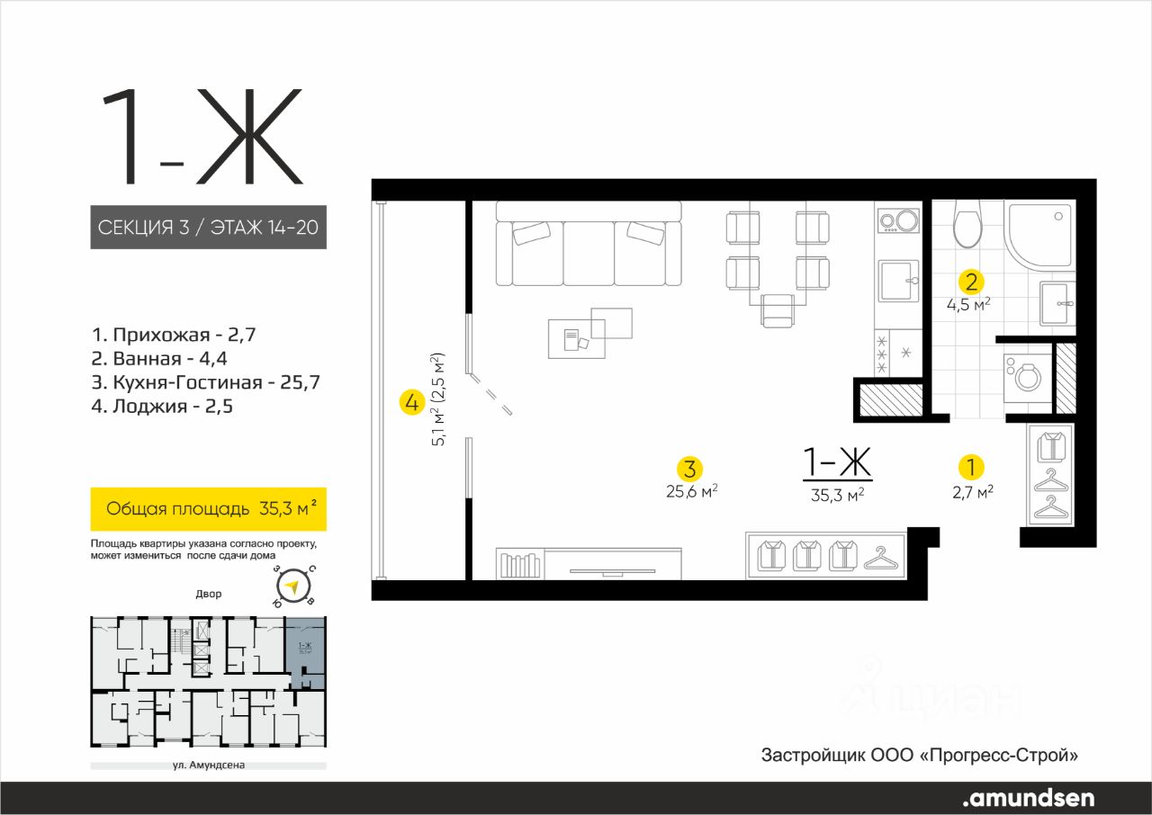 Жилой квартал "Amundsen" - для себя, для семьи, для жизни и развития. Авторская концепция проекта эффектно выделяется в 3 особенностях комплекса: фасады, двор и места общего пользования. AMUNDSEN ПРОЕКТ С ХАРАКТЕРОМ ВЕЛИКОГО ПЕРВООТКРЫВАТЕЛЯ. 4 СЕЗОНА: Двор-трансформер позволяет активно использовать все площадки круглый год. В холодное время года санки, коньки и снежные бои за главную башню. В теплое время источник наполняет двор водой и прохладой. Работают площадки для активных игр и спокойного отдыха. 6 ДЕТСКИХ ПЛОЩАДОК: Мы разделили площадки по возрастным группам для малышей и детей постарше. Качели, аттракционы, водные и активные игры созданы, чтобы познавать мир. 5 ПЛОЩАДОК ДЛЯ СПОКОЙНОГО ОТДЫХА: За счет игры с ландшафтом мы создали приватные зоны, украсили пространство разнотравьем, оживили двор источником. Шум воды, лежаки, беседки, парк места, где ты почувствуешь течение жизни. AMUNDSEN ИДЕАЛЬНОЕ МЕСТО ДЛЯ ЖИЗНИ И РАЗВИТИЯ. - Жилой квартал расположен в экологически чистом районе в окружении двух лесных массивов. - Новые современные школы и детские сады. Спортивный кластер для занятий. - Главный холл пространство для всех. Для самых маленьких игры, для взрослых кафе с ярким дизайном, тихий коворкинг, места для отдыха и светлый, просторный атриум. - Детские площадки "будущего" с оригинальным подходом к созданию игровой среды. - Безопасная территория. Круглосуточная охрана, видеонаблюдение 24/7, электронная система доступа, двор без машин. Застройщик ООО СЗ "Прогресс-Строй", проектная декларация на сайте наш.дом.рф