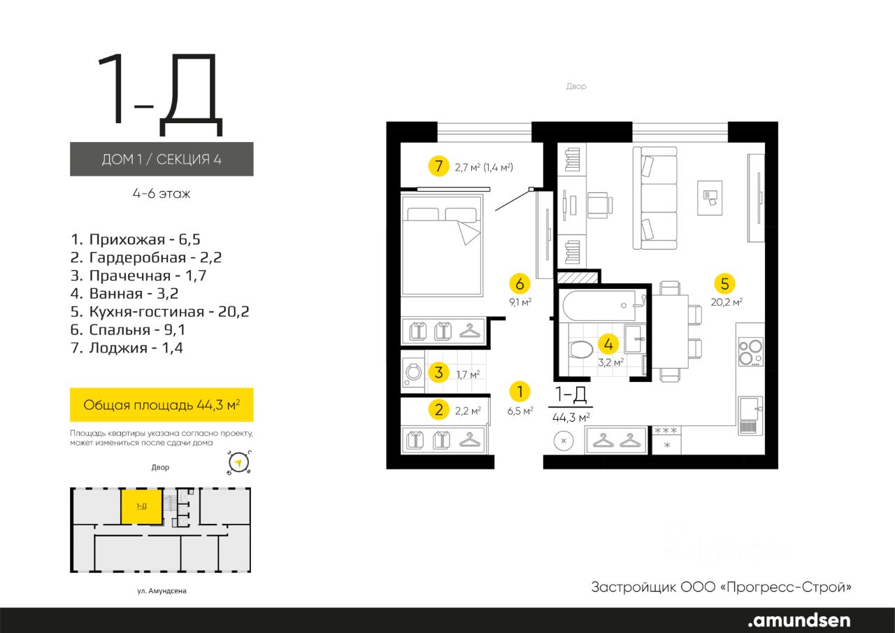 Жилой квартал "Amundsen" - для себя, для семьи, для жизни и развития. Авторская концепция проекта эффектно выделяется в 3 особенностях комплекса: фасады, двор и места общего пользования. AMUNDSEN ПРОЕКТ С ХАРАКТЕРОМ ВЕЛИКОГО ПЕРВООТКРЫВАТЕЛЯ. 4 СЕЗОНА: Двор-трансформер позволяет активно использовать все площадки круглый год. В холодное время года санки, коньки и снежные бои за главную башню. В теплое время источник наполняет двор водой и прохладой. Работают площадки для активных игр и спокойного отдыха. 6 ДЕТСКИХ ПЛОЩАДОК: Мы разделили площадки по возрастным группам для малышей и детей постарше. Качели, аттракционы, водные и активные игры созданы, чтобы познавать мир. 5 ПЛОЩАДОК ДЛЯ СПОКОЙНОГО ОТДЫХА: За счет игры с ландшафтом мы создали приватные зоны, украсили пространство разнотравьем, оживили двор источником. Шум воды, лежаки, беседки, парк места, где ты почувствуешь течение жизни. AMUNDSEN ИДЕАЛЬНОЕ МЕСТО ДЛЯ ЖИЗНИ И РАЗВИТИЯ. - Жилой квартал расположен в экологически чистом районе в окружении двух лесных массивов. - Новые современные школы и детские сады. Спортивный кластер для занятий. - Главный холл пространство для всех. Для самых маленьких игры, для взрослых кафе с ярким дизайном, тихий коворкинг, места для отдыха и светлый, просторный атриум. - Детские площадки "будущего" с оригинальным подходом к созданию игровой среды. - Безопасная территория. Круглосуточная охрана, видеонаблюдение 24/7, электронная система доступа, двор без машин. Застройщик ООО СЗ "Прогресс-Строй", проектная декларация на сайте наш.дом.рф