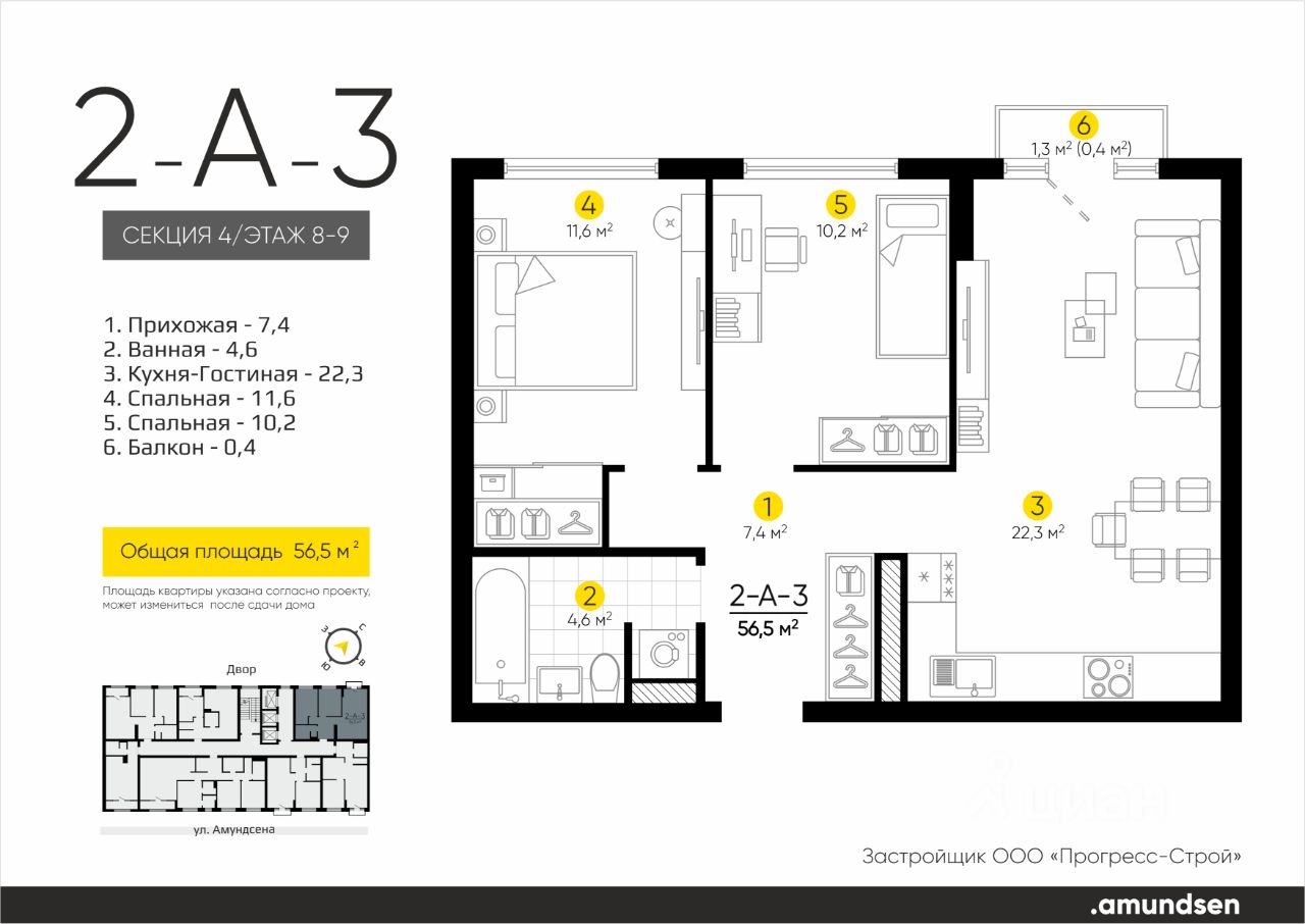 Жилой квартал "Amundsen" - для себя, для семьи, для жизни и развития. Авторская концепция проекта эффектно выделяется в 3 особенностях комплекса: фасады, двор и места общего пользования. AMUNDSEN ПРОЕКТ С ХАРАКТЕРОМ ВЕЛИКОГО ПЕРВООТКРЫВАТЕЛЯ. 4 СЕЗОНА: Двор-трансформер позволяет активно использовать все площадки круглый год. В холодное время года санки, коньки и снежные бои за главную башню. В теплое время источник наполняет двор водой и прохладой. Работают площадки для активных игр и спокойного отдыха. 6 ДЕТСКИХ ПЛОЩАДОК: Мы разделили площадки по возрастным группам для малышей и детей постарше. Качели, аттракционы, водные и активные игры созданы, чтобы познавать мир. 5 ПЛОЩАДОК ДЛЯ СПОКОЙНОГО ОТДЫХА: За счет игры с ландшафтом мы создали приватные зоны, украсили пространство разнотравьем, оживили двор источником. Шум воды, лежаки, беседки, парк места, где ты почувствуешь течение жизни. AMUNDSEN ИДЕАЛЬНОЕ МЕСТО ДЛЯ ЖИЗНИ И РАЗВИТИЯ. - Жилой квартал расположен в экологически чистом районе в окружении двух лесных массивов. - Новые современные школы и детские сады. Спортивный кластер для занятий. - Главный холл пространство для всех. Для самых маленьких игры, для взрослых кафе с ярким дизайном, тихий коворкинг, места для отдыха и светлый, просторный атриум. - Детские площадки "будущего" с оригинальным подходом к созданию игровой среды. - Безопасная территория. Круглосуточная охрана, видеонаблюдение 24/7, электронная система доступа, двор без машин. Застройщик ООО СЗ "Прогресс-Строй", проектная декларация на сайте наш.дом.рф