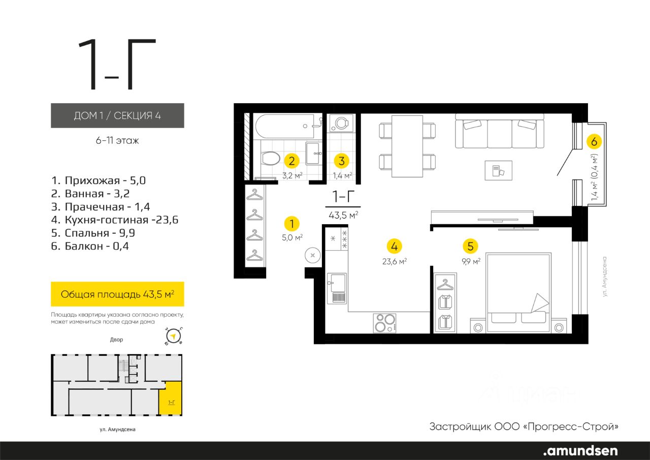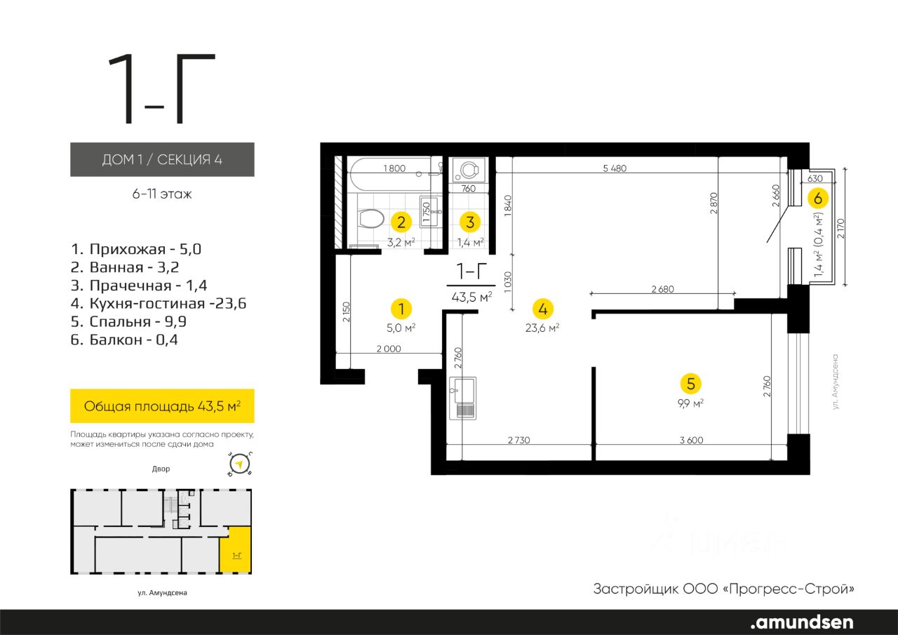 Жилой квартал "Amundsen" - для себя, для семьи, для жизни и развития. Авторская концепция проекта эффектно выделяется в 3 особенностях комплекса: фасады, двор и места общего пользования. AMUNDSEN ПРОЕКТ С ХАРАКТЕРОМ ВЕЛИКОГО ПЕРВООТКРЫВАТЕЛЯ. 4 СЕЗОНА: Двор-трансформер позволяет активно использовать все площадки круглый год. В холодное время года санки, коньки и снежные бои за главную башню. В теплое время источник наполняет двор водой и прохладой. Работают площадки для активных игр и спокойного отдыха. 6 ДЕТСКИХ ПЛОЩАДОК: Мы разделили площадки по возрастным группам для малышей и детей постарше. Качели, аттракционы, водные и активные игры созданы, чтобы познавать мир. 5 ПЛОЩАДОК ДЛЯ СПОКОЙНОГО ОТДЫХА: За счет игры с ландшафтом мы создали приватные зоны, украсили пространство разнотравьем, оживили двор источником. Шум воды, лежаки, беседки, парк места, где ты почувствуешь течение жизни. AMUNDSEN ИДЕАЛЬНОЕ МЕСТО ДЛЯ ЖИЗНИ И РАЗВИТИЯ. - Жилой квартал расположен в экологически чистом районе в окружении двух лесных массивов. - Новые современные школы и детские сады. Спортивный кластер для занятий. - Главный холл пространство для всех. Для самых маленьких игры, для взрослых кафе с ярким дизайном, тихий коворкинг, места для отдыха и светлый, просторный атриум. - Детские площадки "будущего" с оригинальным подходом к созданию игровой среды. - Безопасная территория. Круглосуточная охрана, видеонаблюдение 24/7, электронная система доступа, двор без машин. Застройщик ООО СЗ "Прогресс-Строй", проектная декларация на сайте наш.дом.рф
