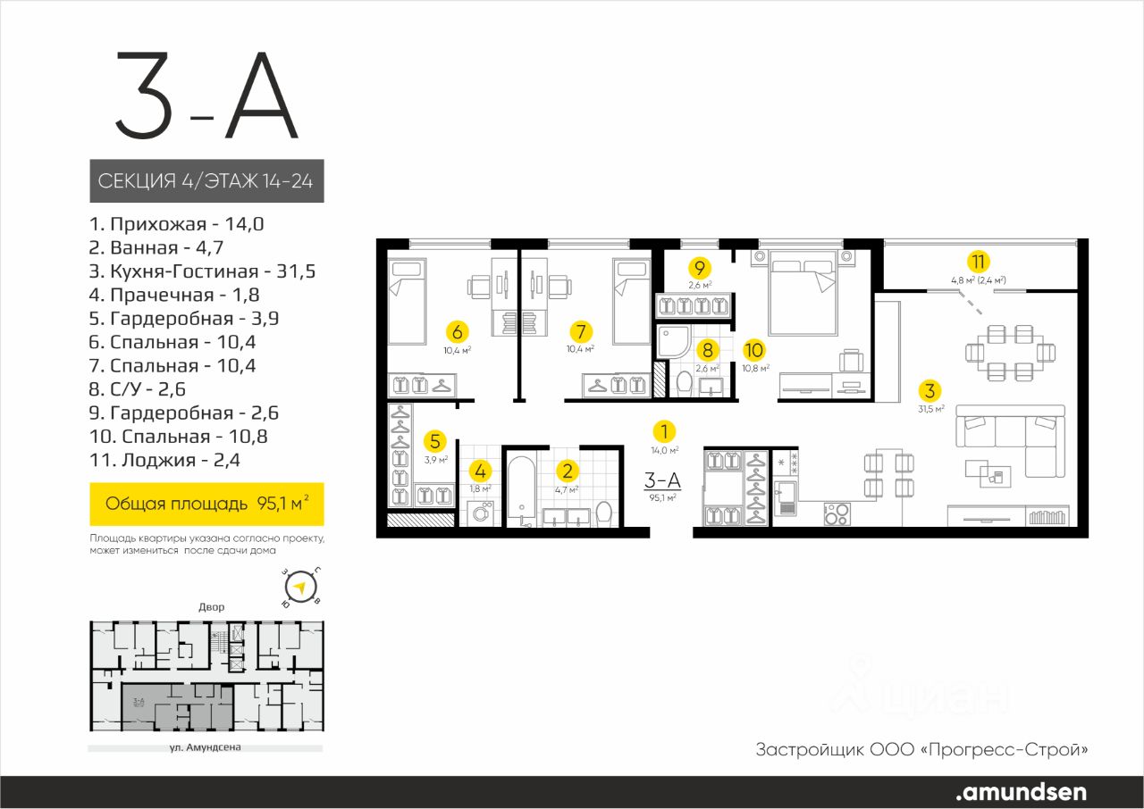 Жилой квартал "Amundsen" - для себя, для семьи, для жизни и развития. Авторская концепция проекта эффектно выделяется в 3 особенностях комплекса: фасады, двор и места общего пользования. AMUNDSEN ПРОЕКТ С ХАРАКТЕРОМ ВЕЛИКОГО ПЕРВООТКРЫВАТЕЛЯ. 4 СЕЗОНА: Двор-трансформер позволяет активно использовать все площадки круглый год. В холодное время года санки, коньки и снежные бои за главную башню. В теплое время источник наполняет двор водой и прохладой. Работают площадки для активных игр и спокойного отдыха. 6 ДЕТСКИХ ПЛОЩАДОК: Мы разделили площадки по возрастным группам для малышей и детей постарше. Качели, аттракционы, водные и активные игры созданы, чтобы познавать мир. 5 ПЛОЩАДОК ДЛЯ СПОКОЙНОГО ОТДЫХА: За счет игры с ландшафтом мы создали приватные зоны, украсили пространство разнотравьем, оживили двор источником. Шум воды, лежаки, беседки, парк места, где ты почувствуешь течение жизни. AMUNDSEN ИДЕАЛЬНОЕ МЕСТО ДЛЯ ЖИЗНИ И РАЗВИТИЯ. - Жилой квартал расположен в экологически чистом районе в окружении двух лесных массивов. - Новые современные школы и детские сады. Спортивный кластер для занятий. - Главный холл пространство для всех. Для самых маленьких игры, для взрослых кафе с ярким дизайном, тихий коворкинг, места для отдыха и светлый, просторный атриум. - Детские площадки "будущего" с оригинальным подходом к созданию игровой среды. - Безопасная территория. Круглосуточная охрана, видеонаблюдение 24/7, электронная система доступа, двор без машин. Застройщик ООО СЗ "Прогресс-Строй", проектная декларация на сайте наш.дом.рф