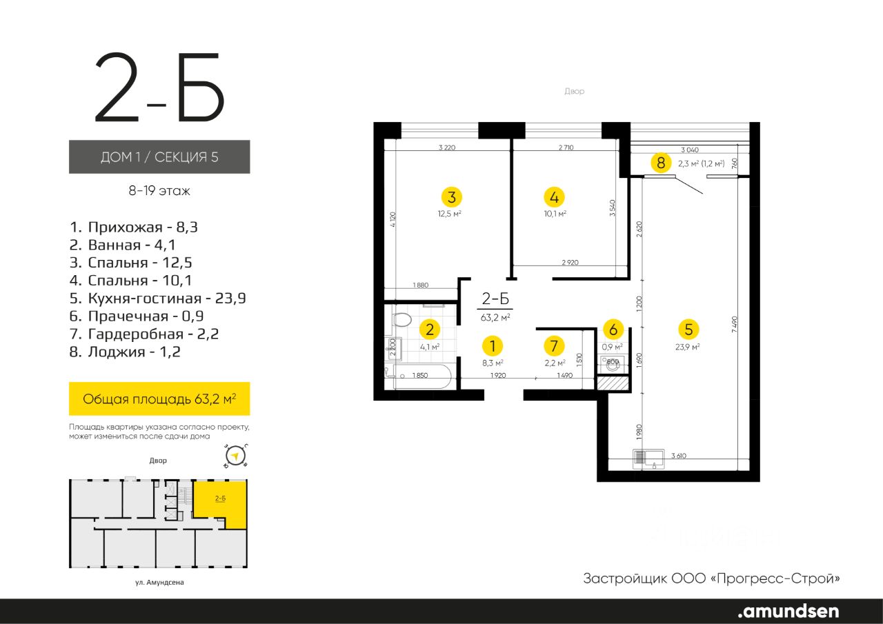 Жилой квартал "Amundsen" - для себя, для семьи, для жизни и развития. Авторская концепция проекта эффектно выделяется в 3 особенностях комплекса: фасады, двор и места общего пользования. AMUNDSEN ПРОЕКТ С ХАРАКТЕРОМ ВЕЛИКОГО ПЕРВООТКРЫВАТЕЛЯ. 4 СЕЗОНА: Двор-трансформер позволяет активно использовать все площадки круглый год. В холодное время года санки, коньки и снежные бои за главную башню. В теплое время источник наполняет двор водой и прохладой. Работают площадки для активных игр и спокойного отдыха. 6 ДЕТСКИХ ПЛОЩАДОК: Мы разделили площадки по возрастным группам для малышей и детей постарше. Качели, аттракционы, водные и активные игры созданы, чтобы познавать мир. 5 ПЛОЩАДОК ДЛЯ СПОКОЙНОГО ОТДЫХА: За счет игры с ландшафтом мы создали приватные зоны, украсили пространство разнотравьем, оживили двор источником. Шум воды, лежаки, беседки, парк места, где ты почувствуешь течение жизни. AMUNDSEN ИДЕАЛЬНОЕ МЕСТО ДЛЯ ЖИЗНИ И РАЗВИТИЯ. - Жилой квартал расположен в экологически чистом районе в окружении двух лесных массивов. - Новые современные школы и детские сады. Спортивный кластер для занятий. - Главный холл пространство для всех. Для самых маленьких игры, для взрослых кафе с ярким дизайном, тихий коворкинг, места для отдыха и светлый, просторный атриум. - Детские площадки "будущего" с оригинальным подходом к созданию игровой среды. - Безопасная территория. Круглосуточная охрана, видеонаблюдение 24/7, электронная система доступа, двор без машин. Застройщик ООО СЗ "Прогресс-Строй", проектная декларация на сайте наш.дом.рф