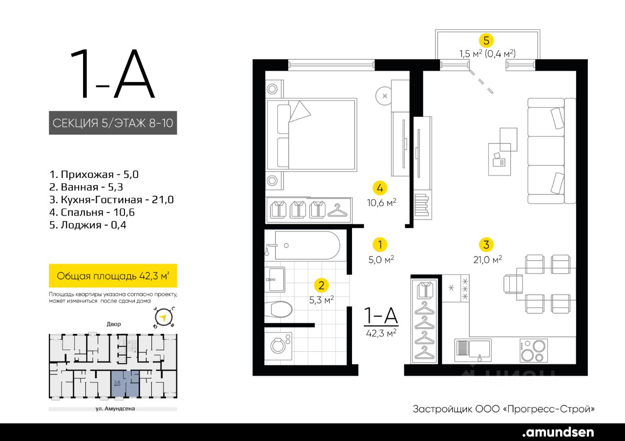 Жилой квартал "Amundsen" - для себя, для семьи, для жизни и развития. Авторская концепция проекта эффектно выделяется в 3 особенностях комплекса: фасады, двор и места общего пользования. AMUNDSEN ПРОЕКТ С ХАРАКТЕРОМ ВЕЛИКОГО ПЕРВООТКРЫВАТЕЛЯ. 4 СЕЗОНА: Двор-трансформер позволяет активно использовать все площадки круглый год. В холодное время года санки, коньки и снежные бои за главную башню. В теплое время источник наполняет двор водой и прохладой. Работают площадки для активных игр и спокойного отдыха. 6 ДЕТСКИХ ПЛОЩАДОК: Мы разделили площадки по возрастным группам для малышей и детей постарше. Качели, аттракционы, водные и активные игры созданы, чтобы познавать мир. 5 ПЛОЩАДОК ДЛЯ СПОКОЙНОГО ОТДЫХА: За счет игры с ландшафтом мы создали приватные зоны, украсили пространство разнотравьем, оживили двор источником. Шум воды, лежаки, беседки, парк места, где ты почувствуешь течение жизни. AMUNDSEN ИДЕАЛЬНОЕ МЕСТО ДЛЯ ЖИЗНИ И РАЗВИТИЯ. - Жилой квартал расположен в экологически чистом районе в окружении двух лесных массивов. - Новые современные школы и детские сады. Спортивный кластер для занятий. - Главный холл пространство для всех. Для самых маленьких игры, для взрослых кафе с ярким дизайном, тихий коворкинг, места для отдыха и светлый, просторный атриум. - Детские площадки "будущего" с оригинальным подходом к созданию игровой среды. - Безопасная территория. Круглосуточная охрана, видеонаблюдение 24/7, электронная система доступа, двор без машин. Застройщик ООО СЗ "Прогресс-Строй", проектная декларация на сайте наш.дом.рф
