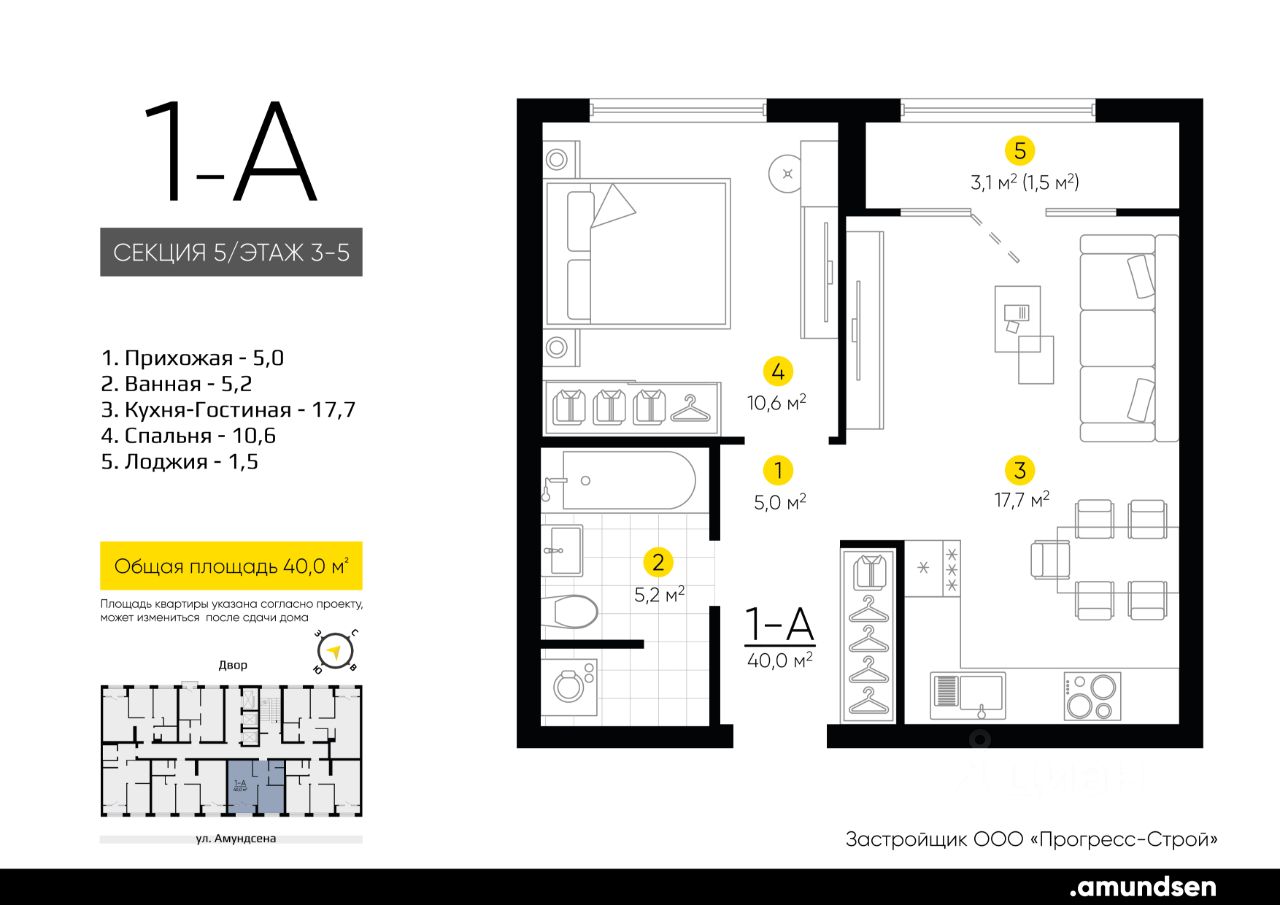 Жилой квартал "Amundsen" - для себя, для семьи, для жизни и развития. Авторская концепция проекта эффектно выделяется в 3 особенностях комплекса: фасады, двор и места общего пользования. AMUNDSEN ПРОЕКТ С ХАРАКТЕРОМ ВЕЛИКОГО ПЕРВООТКРЫВАТЕЛЯ. 4 СЕЗОНА: Двор-трансформер позволяет активно использовать все площадки круглый год. В холодное время года санки, коньки и снежные бои за главную башню. В теплое время источник наполняет двор водой и прохладой. Работают площадки для активных игр и спокойного отдыха. 6 ДЕТСКИХ ПЛОЩАДОК: Мы разделили площадки по возрастным группам для малышей и детей постарше. Качели, аттракционы, водные и активные игры созданы, чтобы познавать мир. 5 ПЛОЩАДОК ДЛЯ СПОКОЙНОГО ОТДЫХА: За счет игры с ландшафтом мы создали приватные зоны, украсили пространство разнотравьем, оживили двор источником. Шум воды, лежаки, беседки, парк места, где ты почувствуешь течение жизни. AMUNDSEN ИДЕАЛЬНОЕ МЕСТО ДЛЯ ЖИЗНИ И РАЗВИТИЯ. - Жилой квартал расположен в экологически чистом районе в окружении двух лесных массивов. - Новые современные школы и детские сады. Спортивный кластер для занятий. - Главный холл пространство для всех. Для самых маленьких игры, для взрослых кафе с ярким дизайном, тихий коворкинг, места для отдыха и светлый, просторный атриум. - Детские площадки "будущего" с оригинальным подходом к созданию игровой среды. - Безопасная территория. Круглосуточная охрана, видеонаблюдение 24/7, электронная система доступа, двор без машин. Застройщик ООО СЗ "Прогресс-Строй", проектная декларация на сайте наш.дом.рф