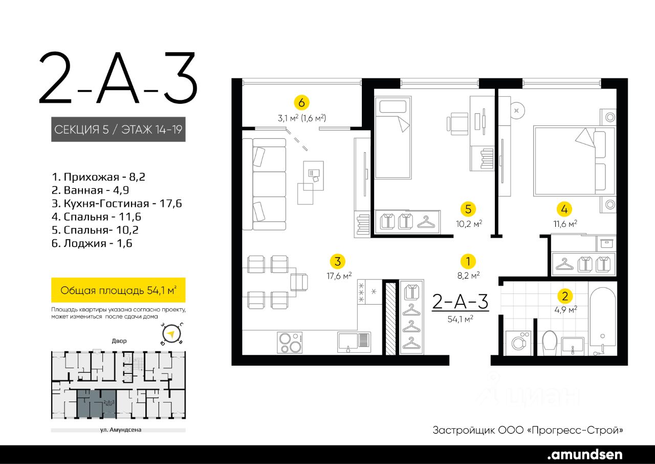 Жилой квартал "Amundsen" - для себя, для семьи, для жизни и развития. Авторская концепция проекта эффектно выделяется в 3 особенностях комплекса: фасады, двор и места общего пользования. AMUNDSEN ПРОЕКТ С ХАРАКТЕРОМ ВЕЛИКОГО ПЕРВООТКРЫВАТЕЛЯ. 4 СЕЗОНА: Двор-трансформер позволяет активно использовать все площадки круглый год. В холодное время года санки, коньки и снежные бои за главную башню. В теплое время источник наполняет двор водой и прохладой. Работают площадки для активных игр и спокойного отдыха. 6 ДЕТСКИХ ПЛОЩАДОК: Мы разделили площадки по возрастным группам для малышей и детей постарше. Качели, аттракционы, водные и активные игры созданы, чтобы познавать мир. 5 ПЛОЩАДОК ДЛЯ СПОКОЙНОГО ОТДЫХА: За счет игры с ландшафтом мы создали приватные зоны, украсили пространство разнотравьем, оживили двор источником. Шум воды, лежаки, беседки, парк места, где ты почувствуешь течение жизни. AMUNDSEN ИДЕАЛЬНОЕ МЕСТО ДЛЯ ЖИЗНИ И РАЗВИТИЯ. - Жилой квартал расположен в экологически чистом районе в окружении двух лесных массивов. - Новые современные школы и детские сады. Спортивный кластер для занятий. - Главный холл пространство для всех. Для самых маленьких игры, для взрослых кафе с ярким дизайном, тихий коворкинг, места для отдыха и светлый, просторный атриум. - Детские площадки "будущего" с оригинальным подходом к созданию игровой среды. - Безопасная территория. Круглосуточная охрана, видеонаблюдение 24/7, электронная система доступа, двор без машин. Застройщик ООО СЗ "Прогресс-Строй", проектная декларация на сайте наш.дом.рф