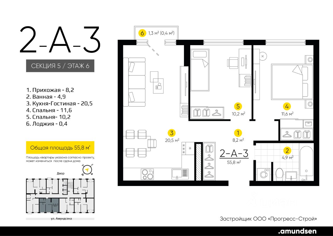 Жилой квартал "Amundsen" - для себя, для семьи, для жизни и развития. Авторская концепция проекта эффектно выделяется в 3 особенностях комплекса: фасады, двор и места общего пользования. AMUNDSEN ПРОЕКТ С ХАРАКТЕРОМ ВЕЛИКОГО ПЕРВООТКРЫВАТЕЛЯ. 4 СЕЗОНА: Двор-трансформер позволяет активно использовать все площадки круглый год. В холодное время года санки, коньки и снежные бои за главную башню. В теплое время источник наполняет двор водой и прохладой. Работают площадки для активных игр и спокойного отдыха. 6 ДЕТСКИХ ПЛОЩАДОК: Мы разделили площадки по возрастным группам для малышей и детей постарше. Качели, аттракционы, водные и активные игры созданы, чтобы познавать мир. 5 ПЛОЩАДОК ДЛЯ СПОКОЙНОГО ОТДЫХА: За счет игры с ландшафтом мы создали приватные зоны, украсили пространство разнотравьем, оживили двор источником. Шум воды, лежаки, беседки, парк места, где ты почувствуешь течение жизни. AMUNDSEN ИДЕАЛЬНОЕ МЕСТО ДЛЯ ЖИЗНИ И РАЗВИТИЯ. - Жилой квартал расположен в экологически чистом районе в окружении двух лесных массивов. - Новые современные школы и детские сады. Спортивный кластер для занятий. - Главный холл пространство для всех. Для самых маленьких игры, для взрослых кафе с ярким дизайном, тихий коворкинг, места для отдыха и светлый, просторный атриум. - Детские площадки "будущего" с оригинальным подходом к созданию игровой среды. - Безопасная территория. Круглосуточная охрана, видеонаблюдение 24/7, электронная система доступа, двор без машин. Застройщик ООО СЗ "Прогресс-Строй", проектная декларация на сайте наш.дом.рф