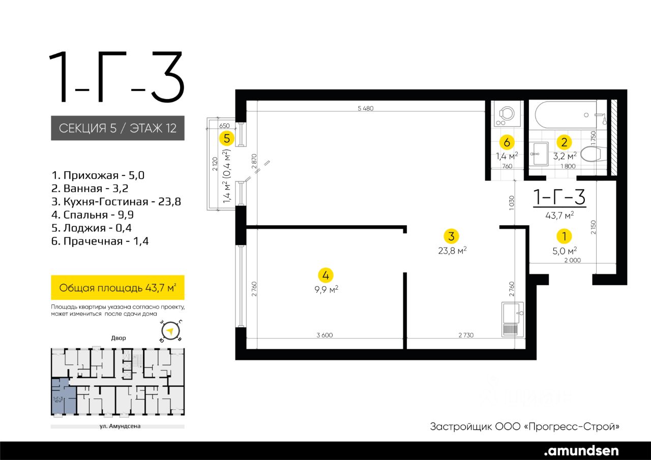 Жилой квартал "Amundsen" - для себя, для семьи, для жизни и развития. Авторская концепция проекта эффектно выделяется в 3 особенностях комплекса: фасады, двор и места общего пользования. AMUNDSEN ПРОЕКТ С ХАРАКТЕРОМ ВЕЛИКОГО ПЕРВООТКРЫВАТЕЛЯ. 4 СЕЗОНА: Двор-трансформер позволяет активно использовать все площадки круглый год. В холодное время года санки, коньки и снежные бои за главную башню. В теплое время источник наполняет двор водой и прохладой. Работают площадки для активных игр и спокойного отдыха. 6 ДЕТСКИХ ПЛОЩАДОК: Мы разделили площадки по возрастным группам для малышей и детей постарше. Качели, аттракционы, водные и активные игры созданы, чтобы познавать мир. 5 ПЛОЩАДОК ДЛЯ СПОКОЙНОГО ОТДЫХА: За счет игры с ландшафтом мы создали приватные зоны, украсили пространство разнотравьем, оживили двор источником. Шум воды, лежаки, беседки, парк места, где ты почувствуешь течение жизни. AMUNDSEN ИДЕАЛЬНОЕ МЕСТО ДЛЯ ЖИЗНИ И РАЗВИТИЯ. - Жилой квартал расположен в экологически чистом районе в окружении двух лесных массивов. - Новые современные школы и детские сады. Спортивный кластер для занятий. - Главный холл пространство для всех. Для самых маленьких игры, для взрослых кафе с ярким дизайном, тихий коворкинг, места для отдыха и светлый, просторный атриум. - Детские площадки "будущего" с оригинальным подходом к созданию игровой среды. - Безопасная территория. Круглосуточная охрана, видеонаблюдение 24/7, электронная система доступа, двор без машин. Застройщик ООО СЗ "Прогресс-Строй", проектная декларация на сайте наш.дом.рф