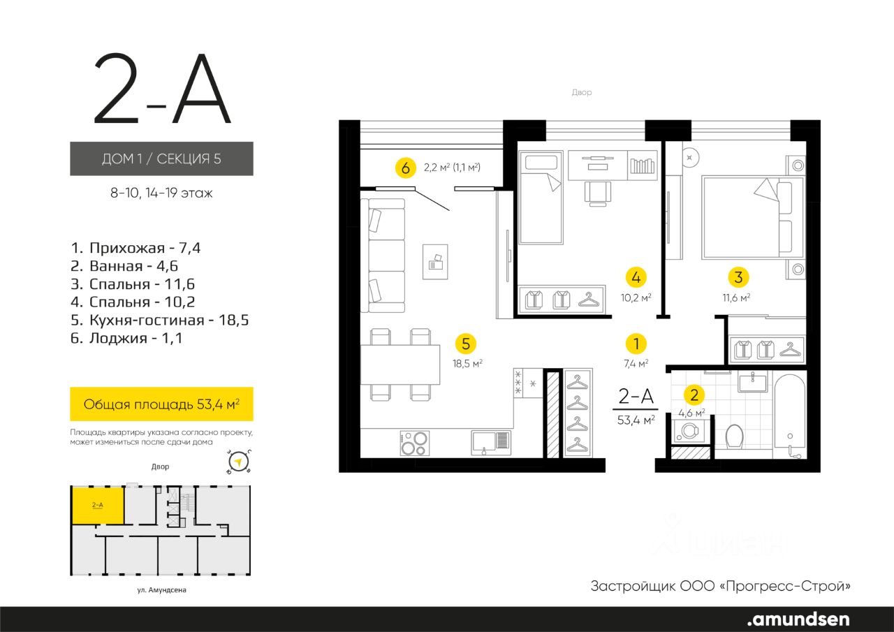 Жилой квартал "Amundsen" - для себя, для семьи, для жизни и развития. Авторская концепция проекта эффектно выделяется в 3 особенностях комплекса: фасады, двор и места общего пользования. AMUNDSEN ПРОЕКТ С ХАРАКТЕРОМ ВЕЛИКОГО ПЕРВООТКРЫВАТЕЛЯ. 4 СЕЗОНА: Двор-трансформер позволяет активно использовать все площадки круглый год. В холодное время года санки, коньки и снежные бои за главную башню. В теплое время источник наполняет двор водой и прохладой. Работают площадки для активных игр и спокойного отдыха. 6 ДЕТСКИХ ПЛОЩАДОК: Мы разделили площадки по возрастным группам для малышей и детей постарше. Качели, аттракционы, водные и активные игры созданы, чтобы познавать мир. 5 ПЛОЩАДОК ДЛЯ СПОКОЙНОГО ОТДЫХА: За счет игры с ландшафтом мы создали приватные зоны, украсили пространство разнотравьем, оживили двор источником. Шум воды, лежаки, беседки, парк места, где ты почувствуешь течение жизни. AMUNDSEN ИДЕАЛЬНОЕ МЕСТО ДЛЯ ЖИЗНИ И РАЗВИТИЯ. - Жилой квартал расположен в экологически чистом районе в окружении двух лесных массивов. - Новые современные школы и детские сады. Спортивный кластер для занятий. - Главный холл пространство для всех. Для самых маленьких игры, для взрослых кафе с ярким дизайном, тихий коворкинг, места для отдыха и светлый, просторный атриум. - Детские площадки "будущего" с оригинальным подходом к созданию игровой среды. - Безопасная территория. Круглосуточная охрана, видеонаблюдение 24/7, электронная система доступа, двор без машин. Застройщик ООО СЗ "Прогресс-Строй", проектная декларация на сайте наш.дом.рф