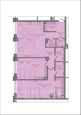 Квартира продается со свободным планировочным решением. Привели пример, как можно организовать внутренние пространство квартиры.