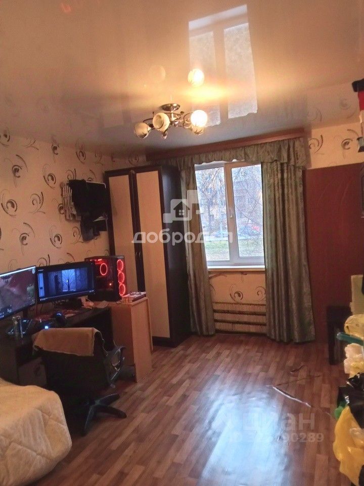 Большая комната правильной формы в 4-х комнатной малонаселенной квартире. Окно выходит на западную сторону. Особенность планировки (вход в комнату) обеспечивает некую приватность - ограниченная видимость из коридора. В комнате пластиковое окно, натяжной потолок, поклеены обои, линолеум. В квартире сделан ремонт: во всех комнатах поменяны двери, везде линолеум, обои, в ванной - кафель, все это создает благоприятное впечатление. В кухне отведено личное место для каждой комнаты. Стиральная машина общая, установлена на несколько комнат, что экономит пространство в квартире. Установлено дежурство по уборке мест общего пользования. Соседи (3 человека) положительные, работающие. Взаимоотношения между собственниками дружественные, взаимоуважительные, благодаря чему держится порядок и чистота. В комнате проживает арендатор около 6 лет.