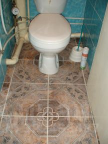 По всей квартире толстый прочный линолеум. Кафельная плитка на стенах и на полу в туалете и ванной.