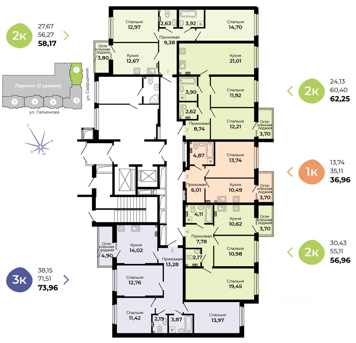 ЖК Есенин. 1 этап строительства (1-5 подъезды, паркинг) Кирпичные стены, железобетонный каркас! Доступный комфорт! Архитектурная концепция —удобная и продуманная жизнь! Улучшенные планировки, большой просторный двухуровневый паркинг, кладовые! Сдержанные тона фасадов и единый стиль комплекса задают атмосферу комфорта и спокойствия. Сам дом будет 13-15-16 этажным Г-образной формы с семью секциями. Большой центральный вход с отдельным лифтом на 3 остановки! Просторные колясочные по 30 м2 в каждой секции! и велосипеды в них тоже можно хранить. Закрытый двор, видеонаблюдение! В доме есть подземный паркинг на 211 мест и 69 кладовых. Здесь точно тепло и безопасно! Современный подземно-наземный паркинг с остановкой лифтов на каждом уровне. Все квартиры сдаются с отделкой под чистовую.