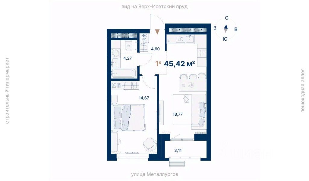 До конца ноября — скидка до 10% при 100% оплате и в ипотеку! Однокомнатная квартира в Атлас Визион — баланс комфорта, стиля и удобства. Планировка легко трансформируется под любые сценарии: спальня, гостиная, место для работы. Отличный вариант как для жизни, так и для сдачи. Комплекс расположен на ул. Металлургов, ВерхИсетский район — рядом транспортные развязки и остановки, гипермаркеты. Комфортную среду для жизни и отдыха обеспечивают: безопасный и разнообразный двор, наличие парковочных мест, сервисы на уровне жилого комплекса, своя УК. Доступны гибкие условия для покупки: ипотека, рассрочка, трейдин, комбопокупка.
