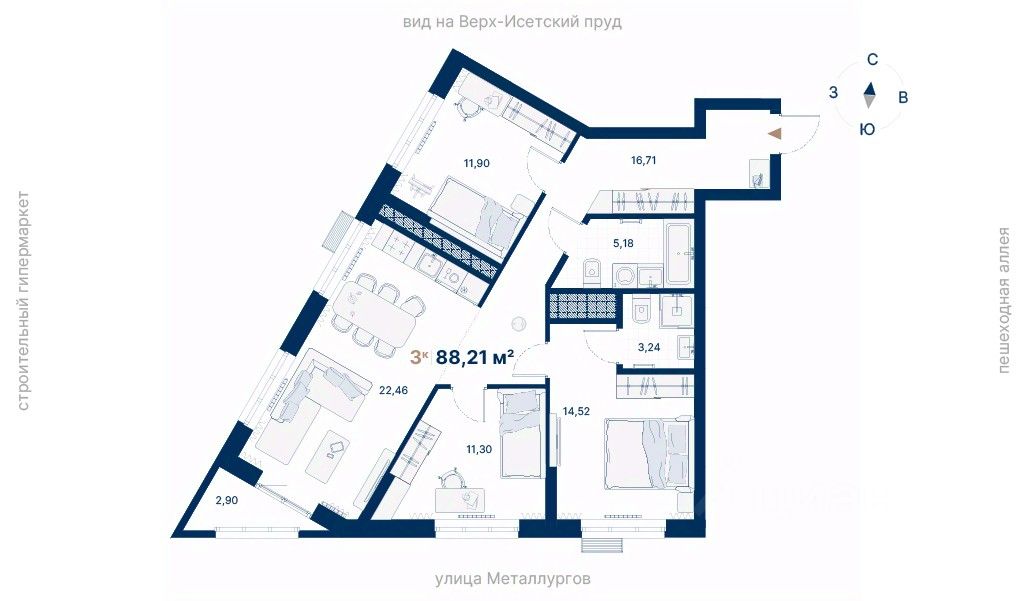 Просторная квартира — это решение для большой семьи, для тех, кто ценит личное пространство. Здесь хватит места для детских игр, родительской спальни, кабинета и гостиной, создавая комфорт для каждого члена семьи. "Атлас Визион" — это жилая экосистема комфорт-плюс класса: девять башен переменной этажности с архитектурой, вдохновленной природой Урала, уникальным дворовым пространством, детским садом на 150 мест и подземным и наземным паркингами. Проект расположен на улице Металлургов, в пяти минутах от ТЦ "Мега". В районе уже сейчас есть все необходимое: школы, поликлиники, магазины. Уникальное преимущество жизни в экосистеме — резиденты получат доступ к сервисам и услугам, не выходя из дома, — кабинеты, студии и центры досуга можно будет посетить, буквально в тапочках, просто спустившись на лифте. В проектах "Атлас Девелопмент" можно воспользоваться рассрочкой, ипотекой, трейд-ин или комбо-покупкой в зависимости от конкретного комплекса.