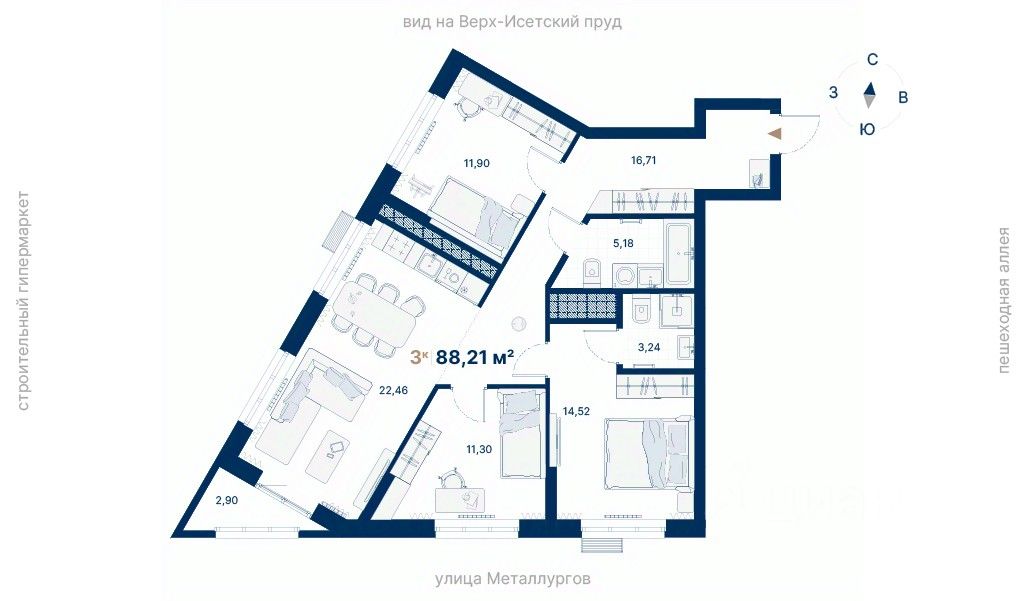 Общая площадь88,21 м²