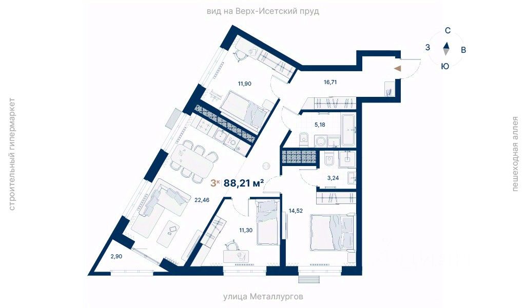Проект расположен на улице Металлургов, в пяти минутах от ТЦ "Мега". В районе уже сейчас есть все необходимое: школы, поликлиники, магазины.