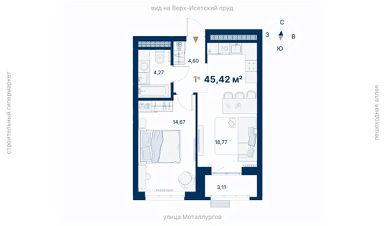 Общая площадь45,42 м²