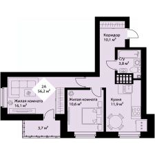 Общая площадь54,3 м²