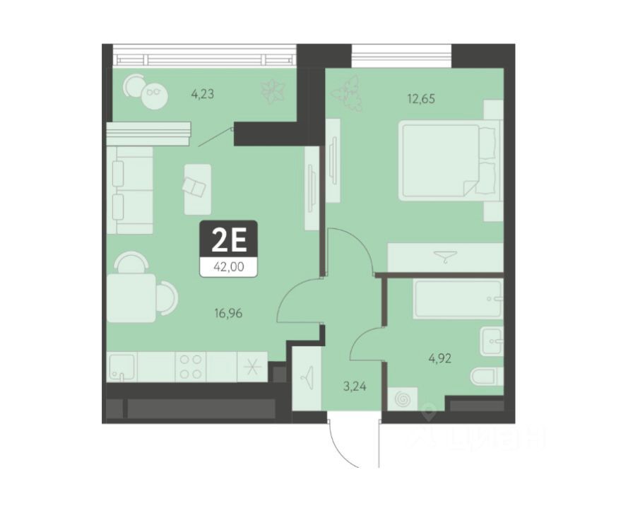 В продаже просторная 1-к квартира - 37,77 кв.м. в ЖК "КВАРТАЛ 12" с отделкой white box.