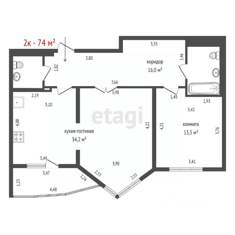 74 м²