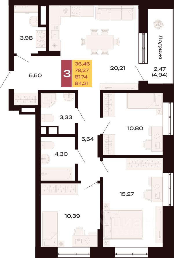 Продается Трёхкомнатная квартира площадью 84.21 кв.м. на 5 этаже. Квартира в ЖК "Первый Южный" располагается в центральной части перспективного микрорайона, в границах улиц Шаумяна, Амундсена, Волгоградской и Советских Женщин с отличной транспортной доступностью, близостью к центру и развитой социальной инфраструктурой.