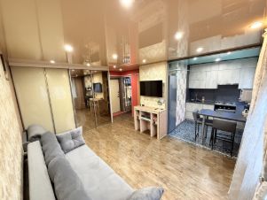В квартире находится небольшое кладовое помещение. В комнате- Большой встроенный шкаф с четырьмя стеклянными,две из которых из бронзового зеркала.Несмотря на наличие натяжных потолков в квартире по прежнему высота потолка осталась 2,5 м,за счёт того,что сняты деревянные полы.В квартире просторно и легко дышится.Достаточное кол-во розеток,вас больше не будет мучить паутина проводов.В доме ТСЖ.Очень тихие и хорошие соседи-при желании познакомим.