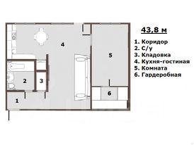 Планировка: кухня-гостиная, комната, с/у, 2 гардеробные, балкон.