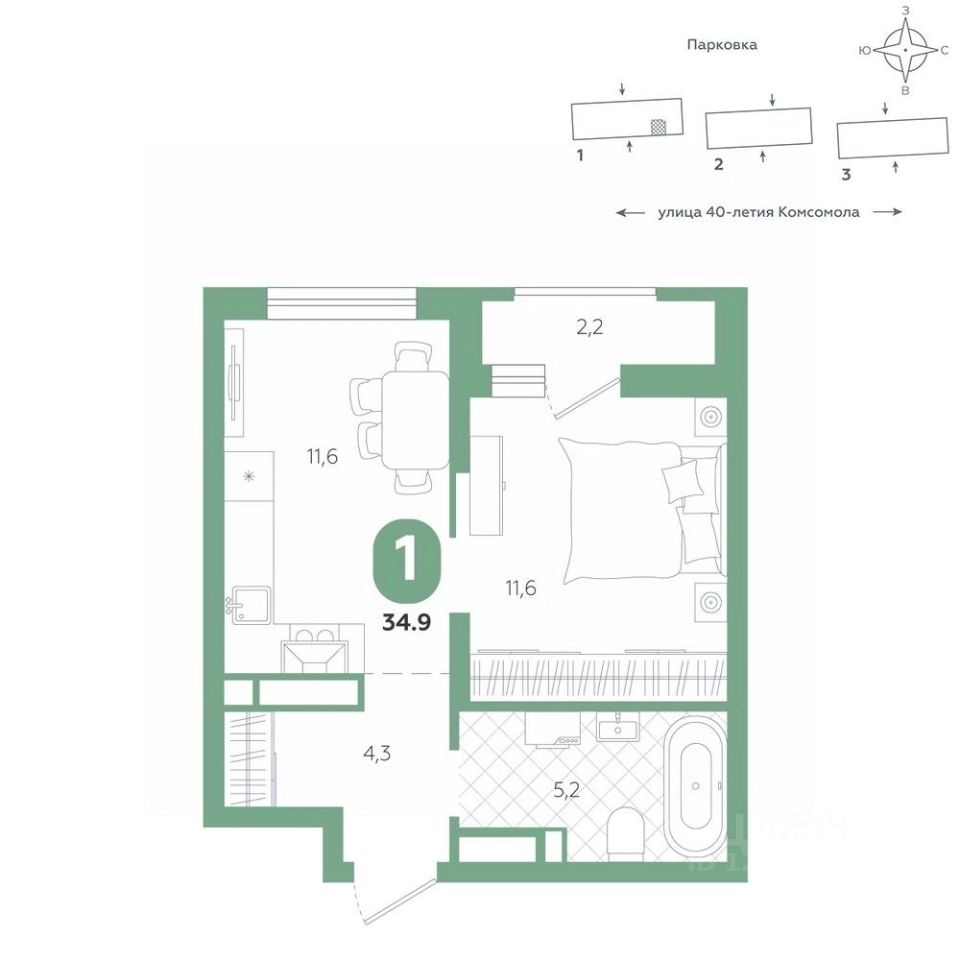 Квартира располагается в ЖК "Комсомольский" — жилом комплексе комфорт-класса. Здесь вы будете наслаждаться беззаботной жизнью, ведь ваш дом — воплощение практичности, безопасности и надежности. Для удобства предусмотрены колясочные на первых этажах домов, где можно оставить велосипеды и коляски в тепле. За безопасность отвечают система электронных ключей и видеонаблюдение. Еще здесь собственная котельная, поэтому в доме всегда будут горячая вода и оплата счетов только за фактически потребленное тепло.