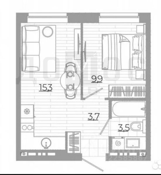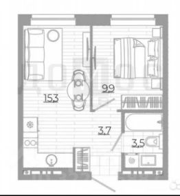 Квартира небольшой площади , но при этом с функционалом Евро - девушки. Кухня гостиная 15,2 кв.м. , где можно организовать и зону готовки и зону отдыха, и отдельная спальня.
