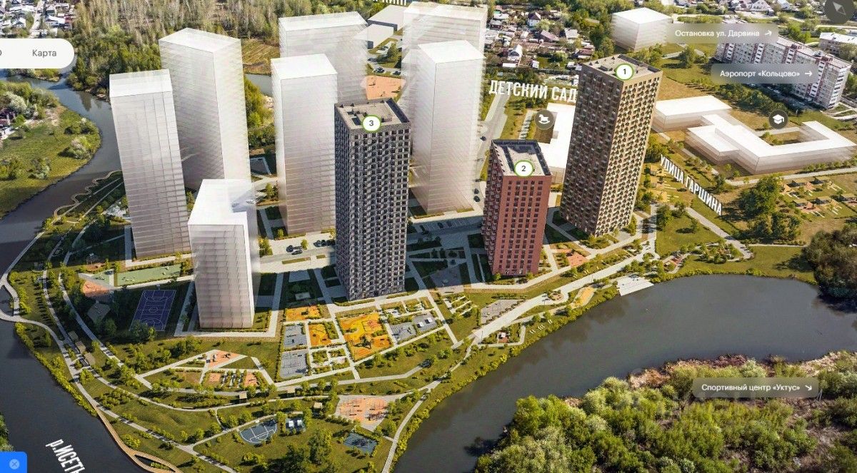 Набережную Исети мы превратим в современное общественное пространство с местами для прогулок, игр и спорта, видовой площадкой, уютными зелёными зонами. На территории жилого квартала будут современные дома с многоуровневыми паркингами, свой детский сад на 350 малышей. А ещё магазины, полезные сервисы и кафе — они откроются на первых этажах.