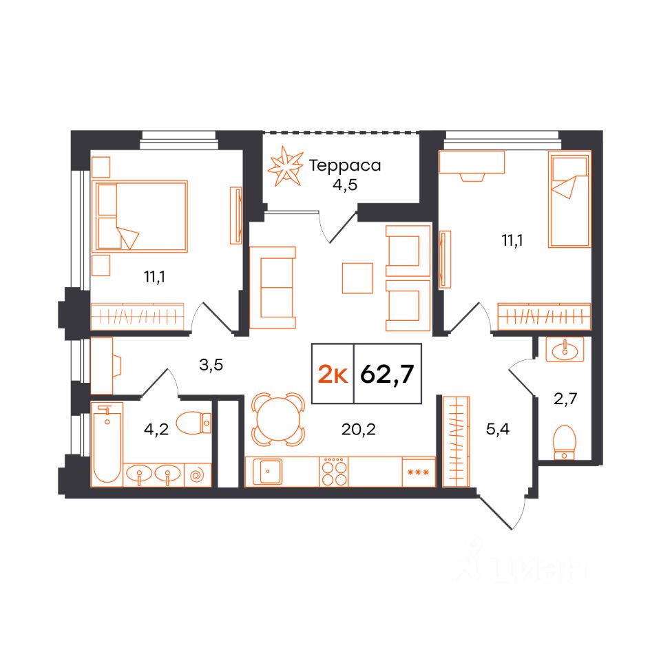 62,7 м²