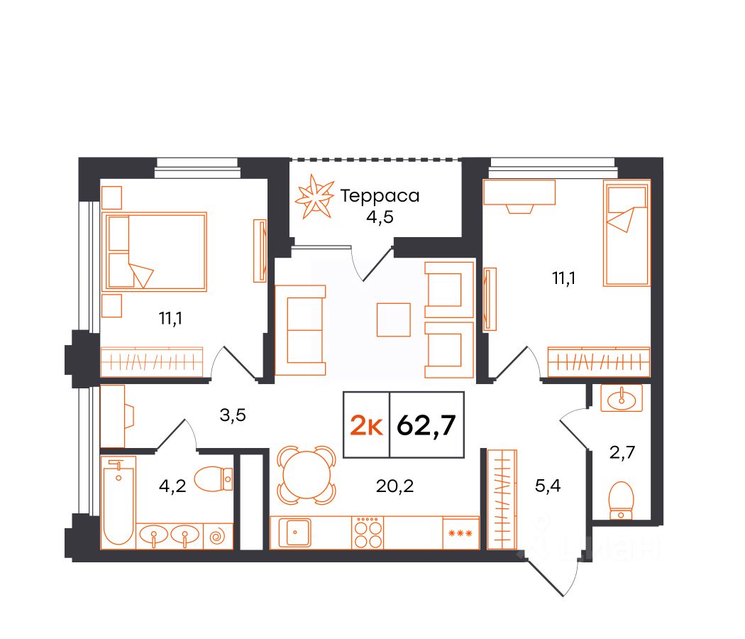 62,7 м²