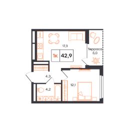 42,9 м²