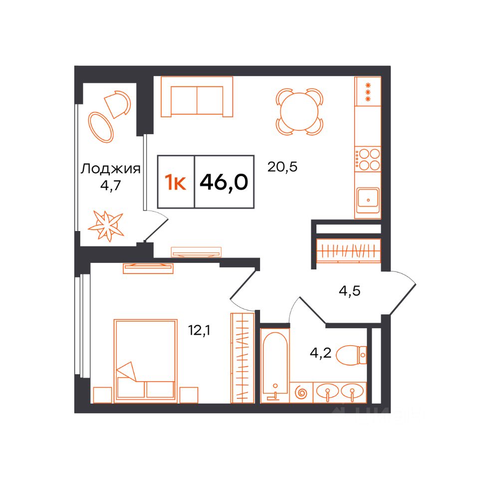 Продаётся 1-комнатная квартира в строящемся доме (ГП-1), срок сдачи: II-кв. 2027, общей площадью 46 кв.м., на 8 этаже. Новый жилой комплекс "Александровский" от застройщика "ГК B72" расположен по адресу: г. Нижний Тагил, Уральский проспект/
