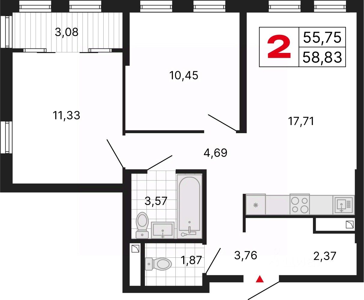 Продается 2-комн. квартира от застройщика с отделкой в ЖК "ДНК. Дом на Куйбышева" на 23 этаже. Общая площадь: 58.83 кв.м., жилая: 21.78 кв.м., площадь просторной кухни-столовой: 17.71 кв.м. Угловая квартира, окна oбecпeчивaют paвнoмepнoe ocвeщeниe в тeчeниe дня. В квартире одна лоджия, один совмещенный и один раздельный санузел. Высота потолков 2.7 м.