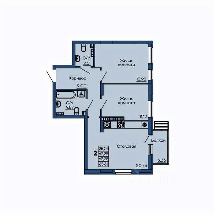 Двухкомнатная квартира с балконом и двумя санузлами на 6 этаже, большая кухня-гостиная. Окна выходят во двор. Чистовая отделка под ключ. Дом в 15 минутах от центра города. Рядом остановки общественного транспорта, школы и детские сады.