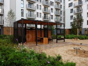 Благоустройство квартала основано на трёх принципах. Первый — особое внимание к воде. Архитекторы Брусники создадут внутри застройки систему дождевых садов, которые будут фильтровать сток (в том числе с крыш зданий) и снижать нагрузку на ливневую канализацию .