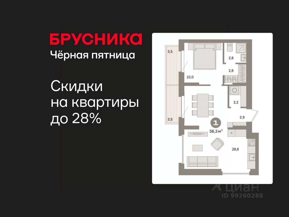 Квартира с кухней-гостиной и одной спальней в квартале "Депо". Особенности планировки: гардеробная, предчистовая отделка, мастер-спальня, балкон.