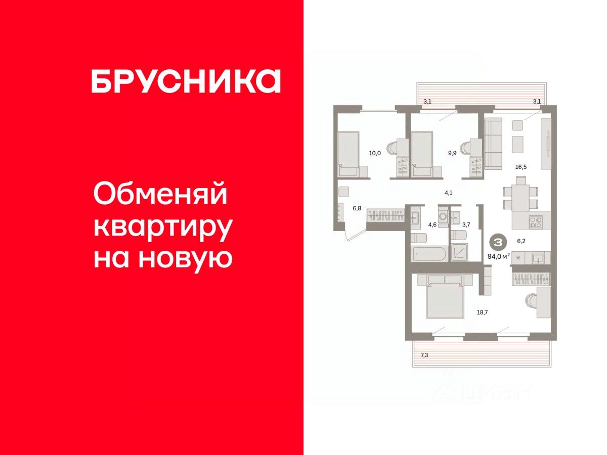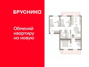 Квартира с кухней-гостиной и тремя спальнями в квартале "Депо". Особенности планировки: балкон, окна на две стороны, предчистовая отделка, разнесённые спальни, терраса на крыше.