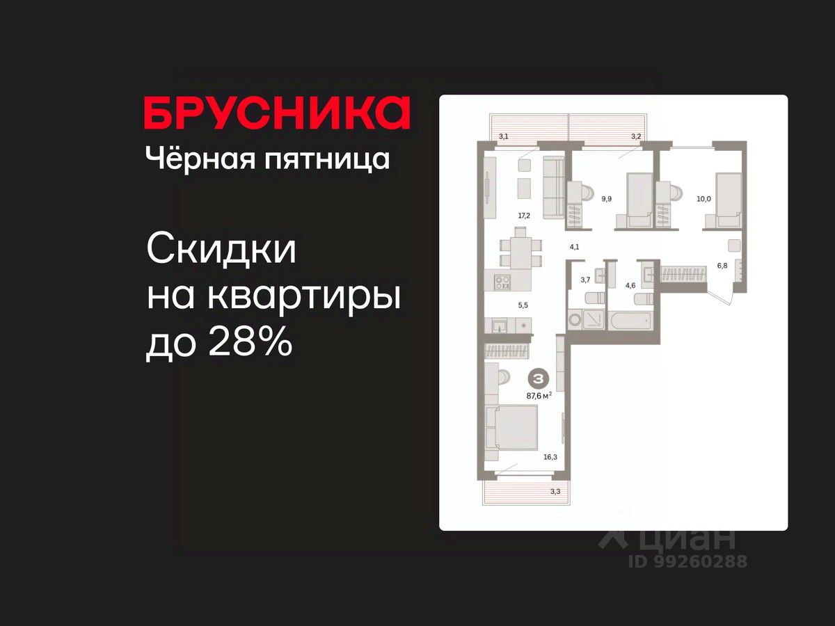 Квартира с кухней-гостиной и тремя спальнями в квартале "Депо". Особенности планировки: окна на две стороны, второй санузел, вид во двор, разнесённые спальни, предчистовая отделка, балкон, терраса на крыше.