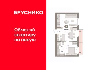 Квартира с кухней-гостиной и одной спальней в квартале "Депо". Особенности планировки: балкон, второй санузел, гардеробная, мастер-спальня, предчистовая отделка.