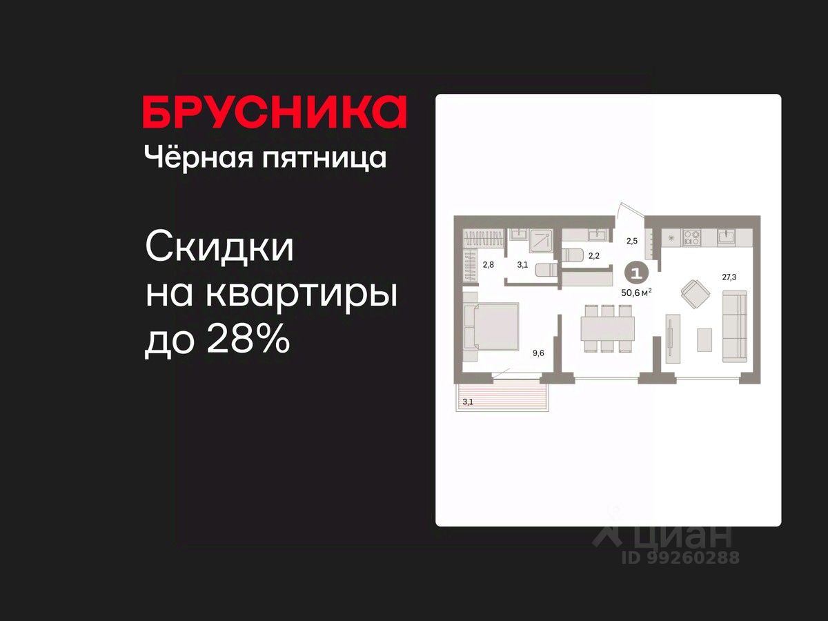 Квартира с кухней-гостиной и одной спальней в квартале "Депо". Особенности планировки: второй санузел, гардеробная, предчистовая отделка, мастер-спальня, балкон.
