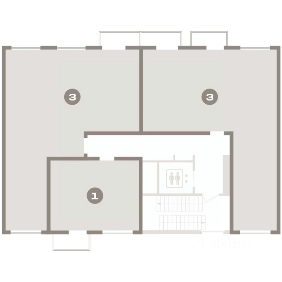Квартира с кухней-гостиной и тремя спальнями в квартале "Депо". Особенности планировки: окна на две стороны, гардеробная, вид во двор, разнесённые спальни, предчистовая отделка, балкон.
