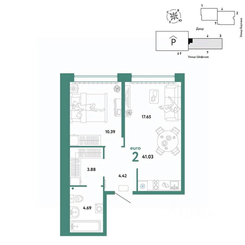 Продается 2комнатная квартира на 4 этаже от застройщика Страна Девелопмент. Площадь квартиры 41,03 кв. м. Стоимость указана без учета акций.